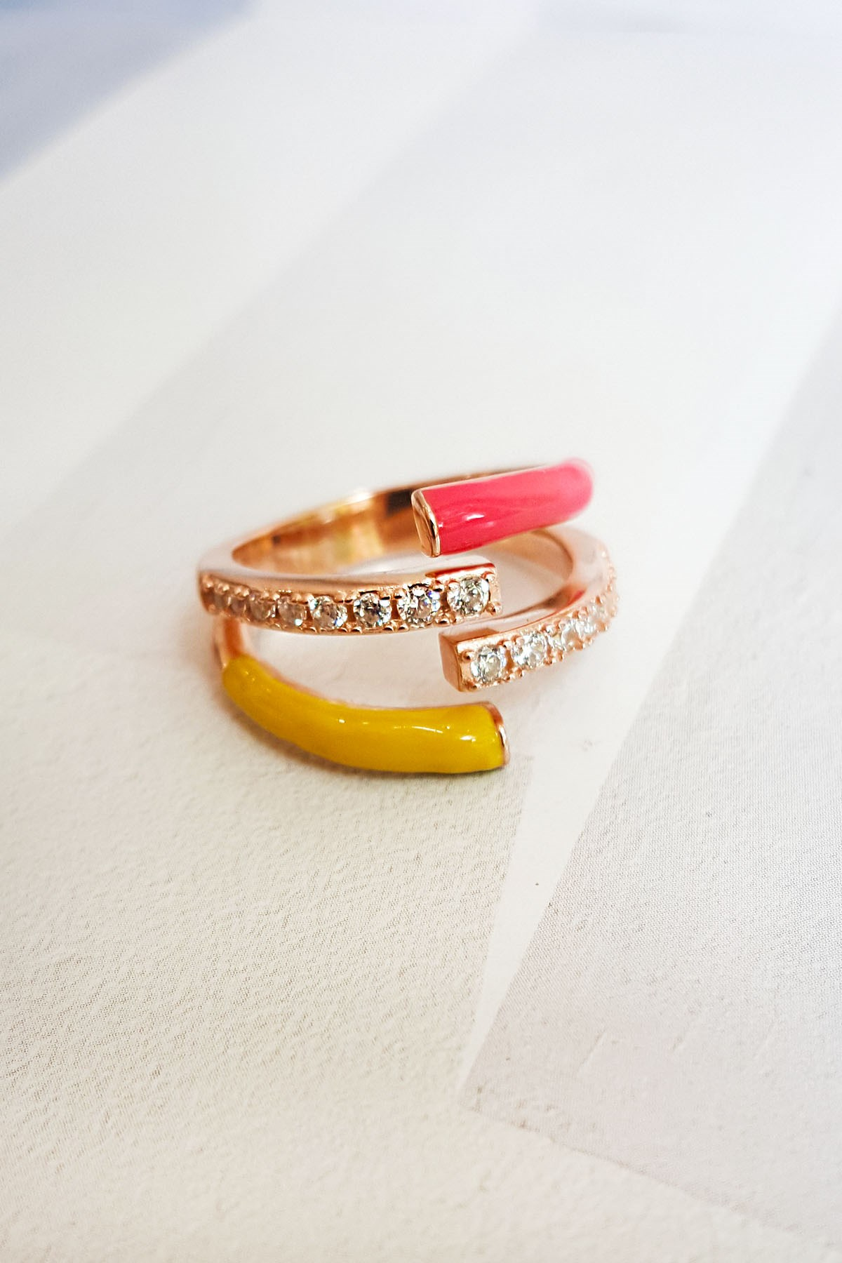 2 Color Enamel Twin Stone Silver Ring