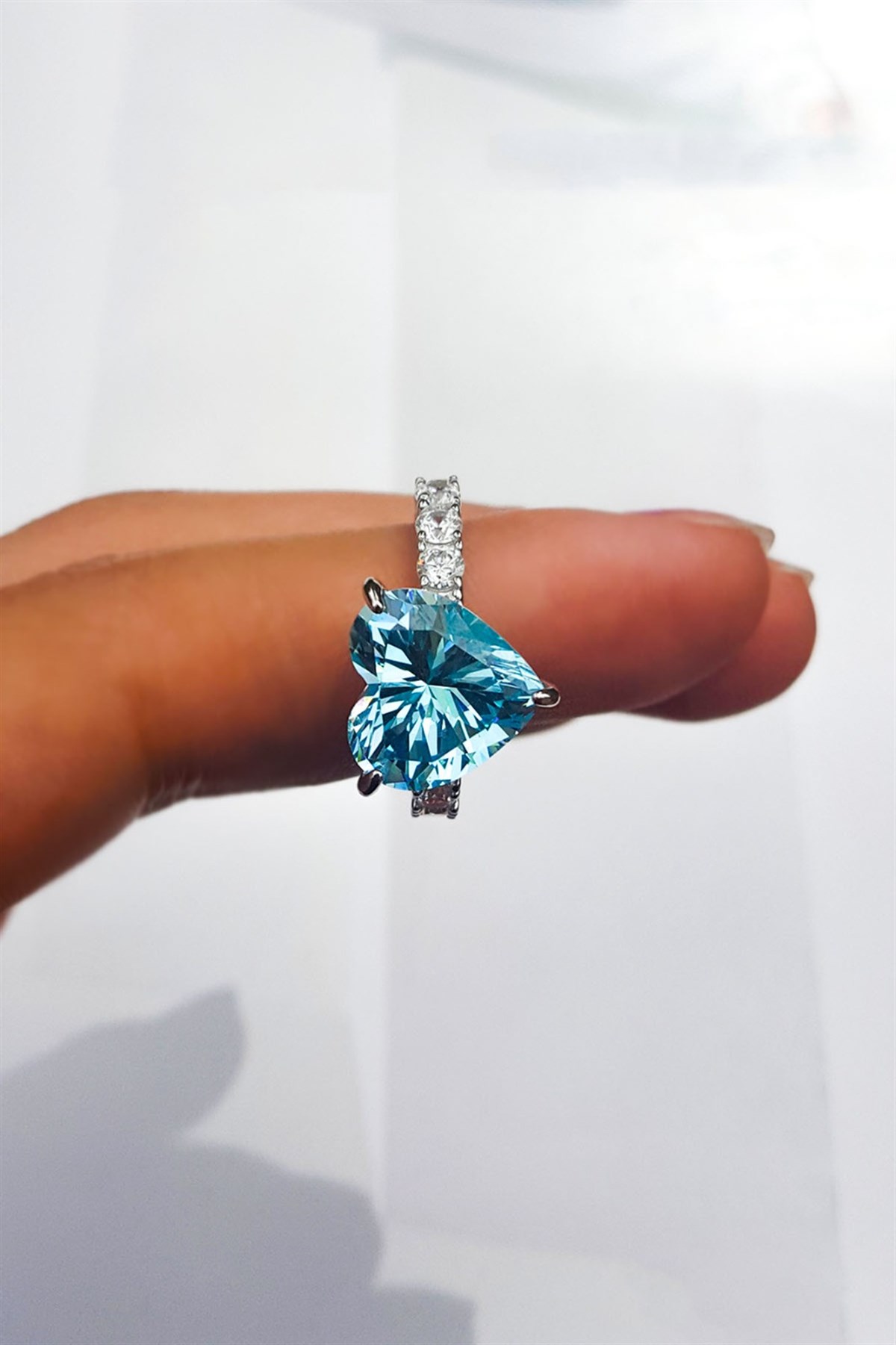 A-Quality Blue Heart Cut Silver Ring with Zirconia Stone