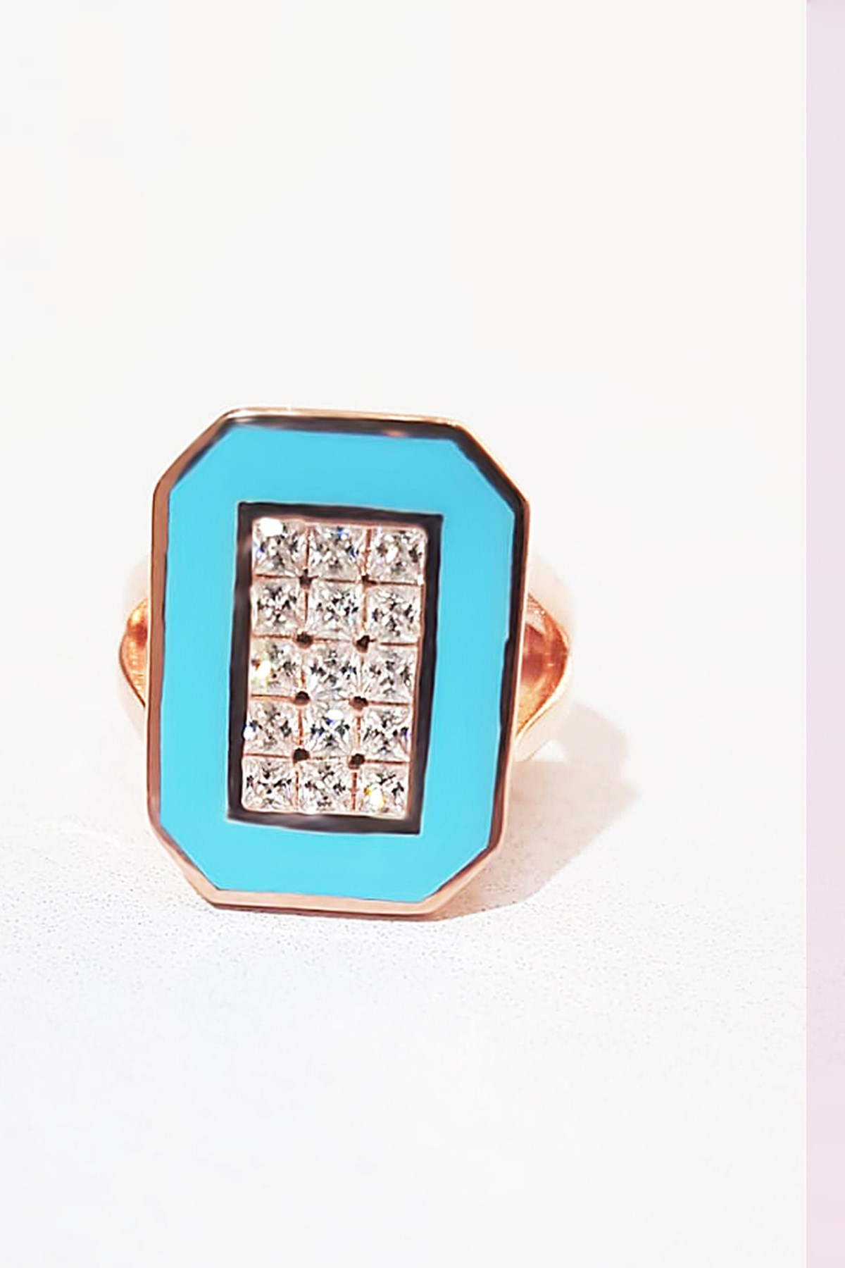 AQUA MİNELİ DİKDÖRTGEN İÇİ TAŞLI GÜMÜŞ YÜZÜK