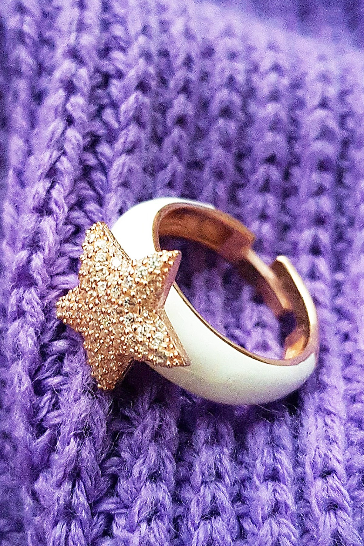 BEYAZ MİNELİ BOMBELİ STAR GÜMÜŞ YÜZÜK