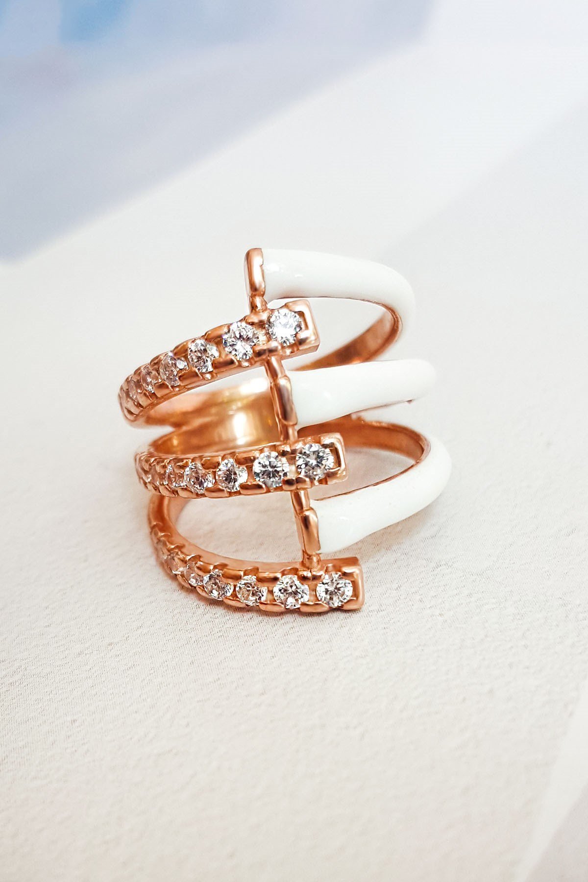 Beyaz Mineli Triple Taşlı Gümüş Yüzük