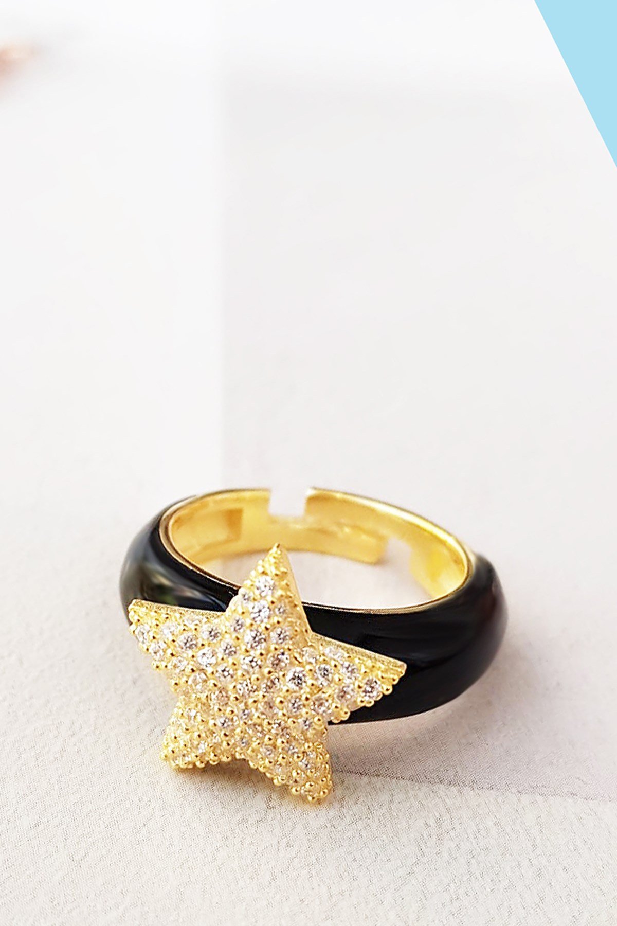 BLACK ALTIN MİNELİ BOMBELİ STAR GÜMÜŞ YÜZÜK