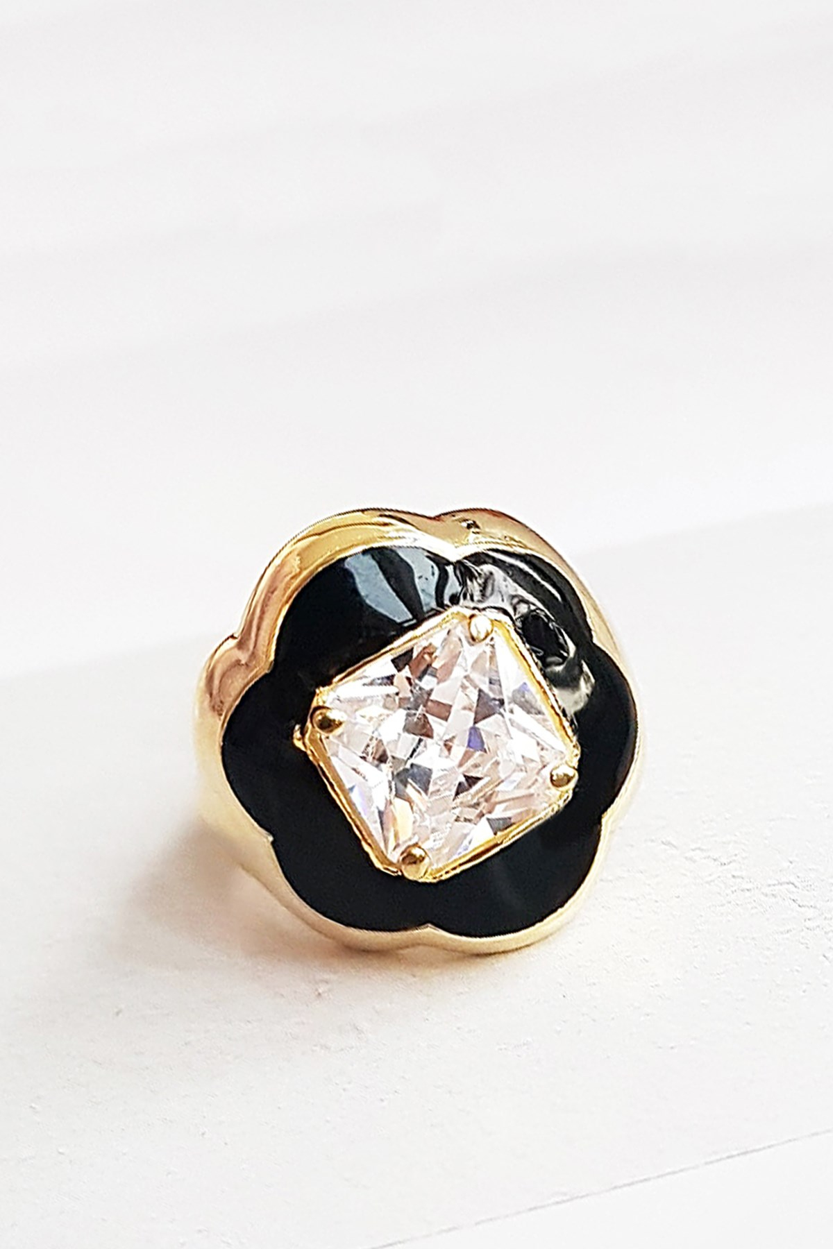 BLACK CRYSTAL FLOWER GÜMÜŞ YÜZÜK