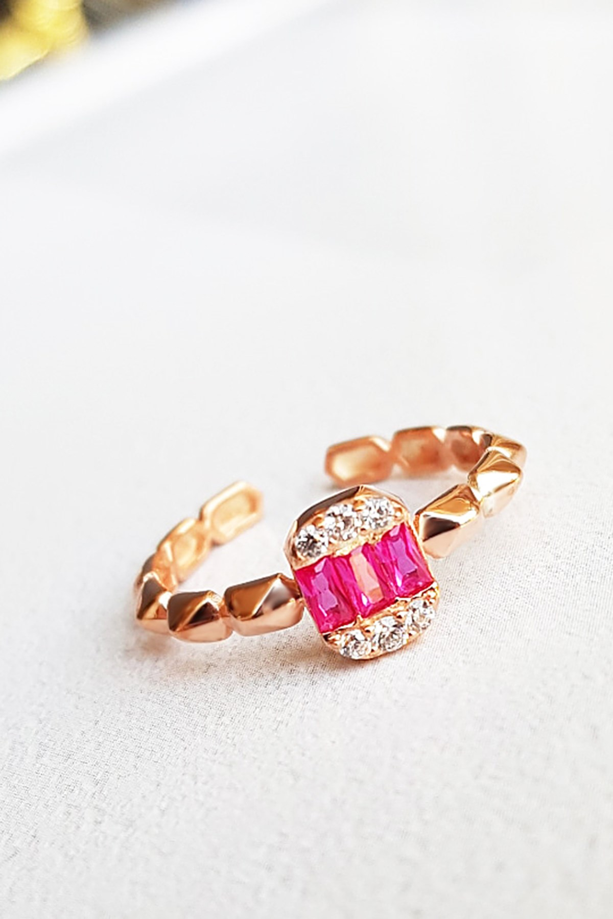 FUCHSIA BAGUETTE PIRAMID SILVER RING