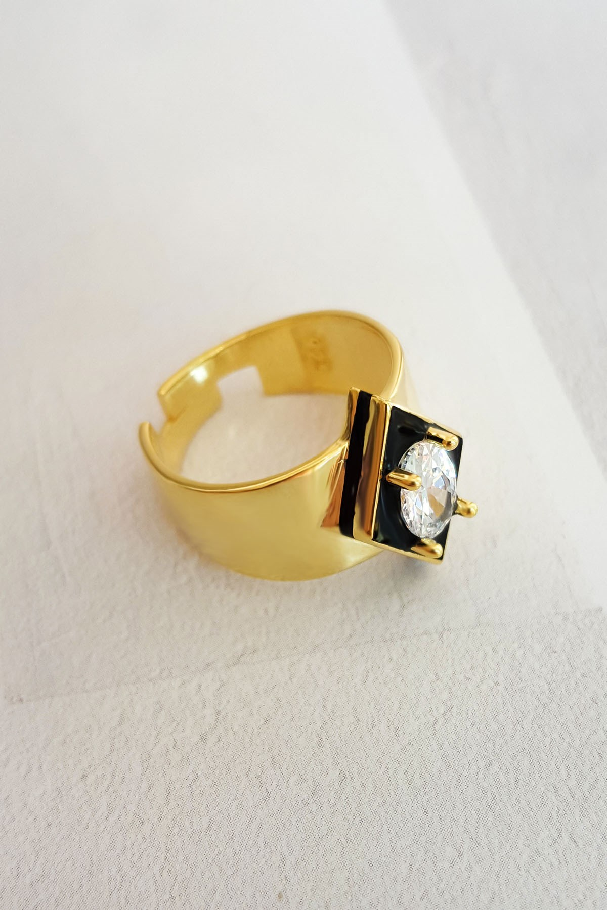 Geometrik Detaylı Taşlı Gümüş Yüzük