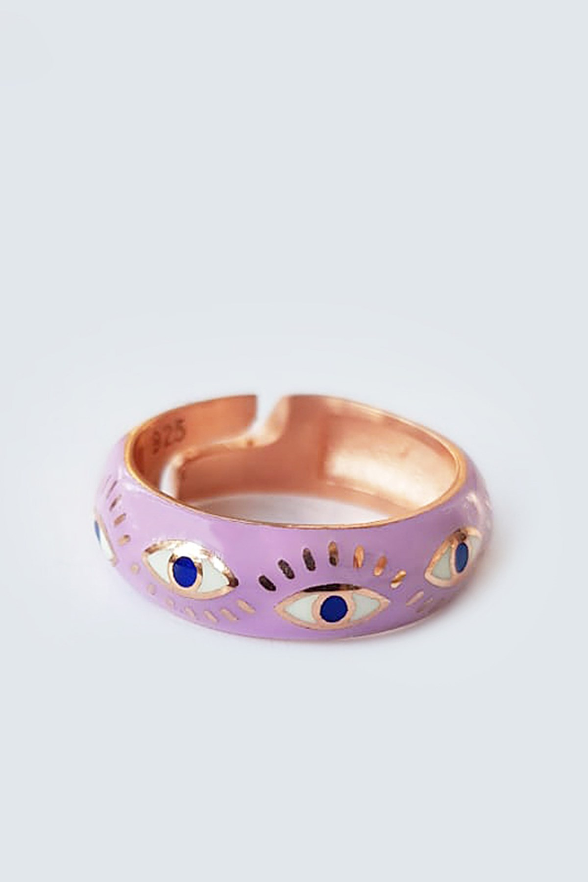 SILVER RING WITH EYE CURVED LILAC ENAMEL