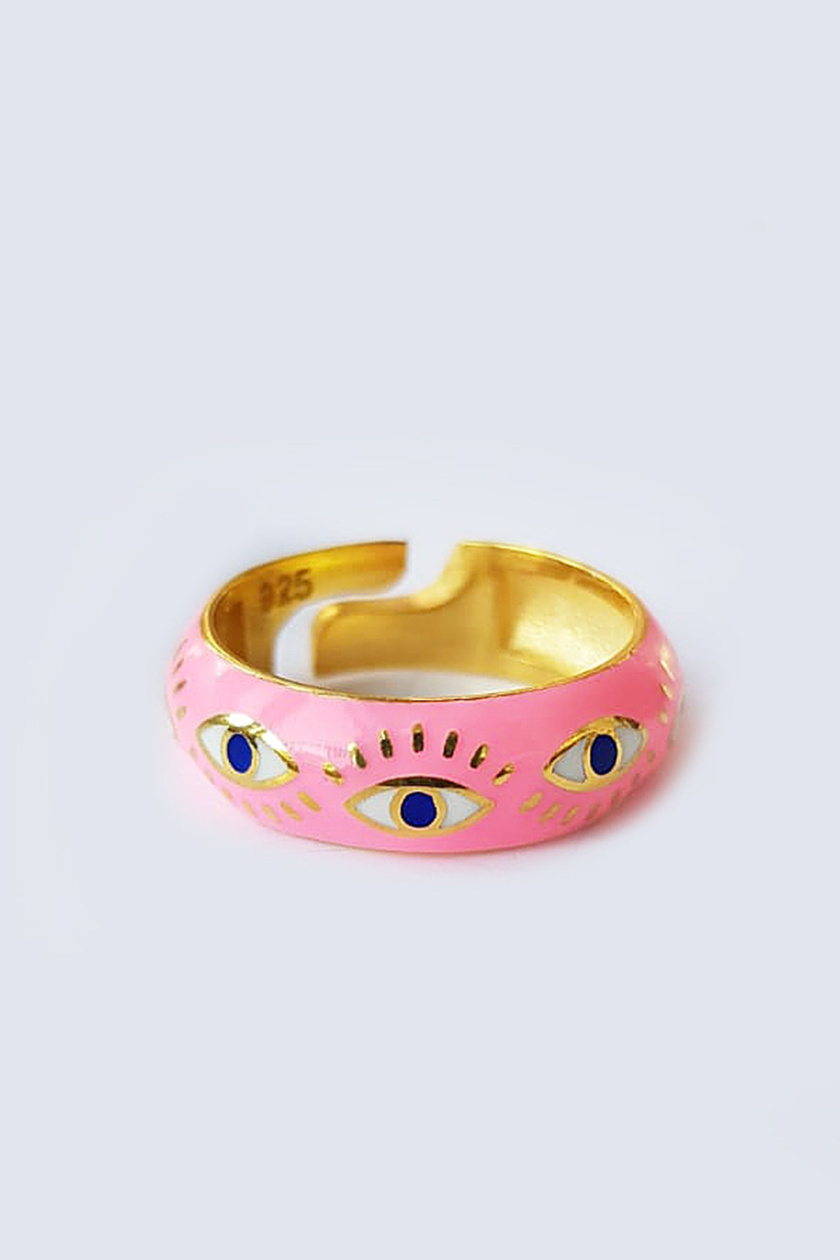 GÖZ BOMBELİ FİGÜRLÜ PEMBE MİNELİ GÜMÜŞ YÜZÜK