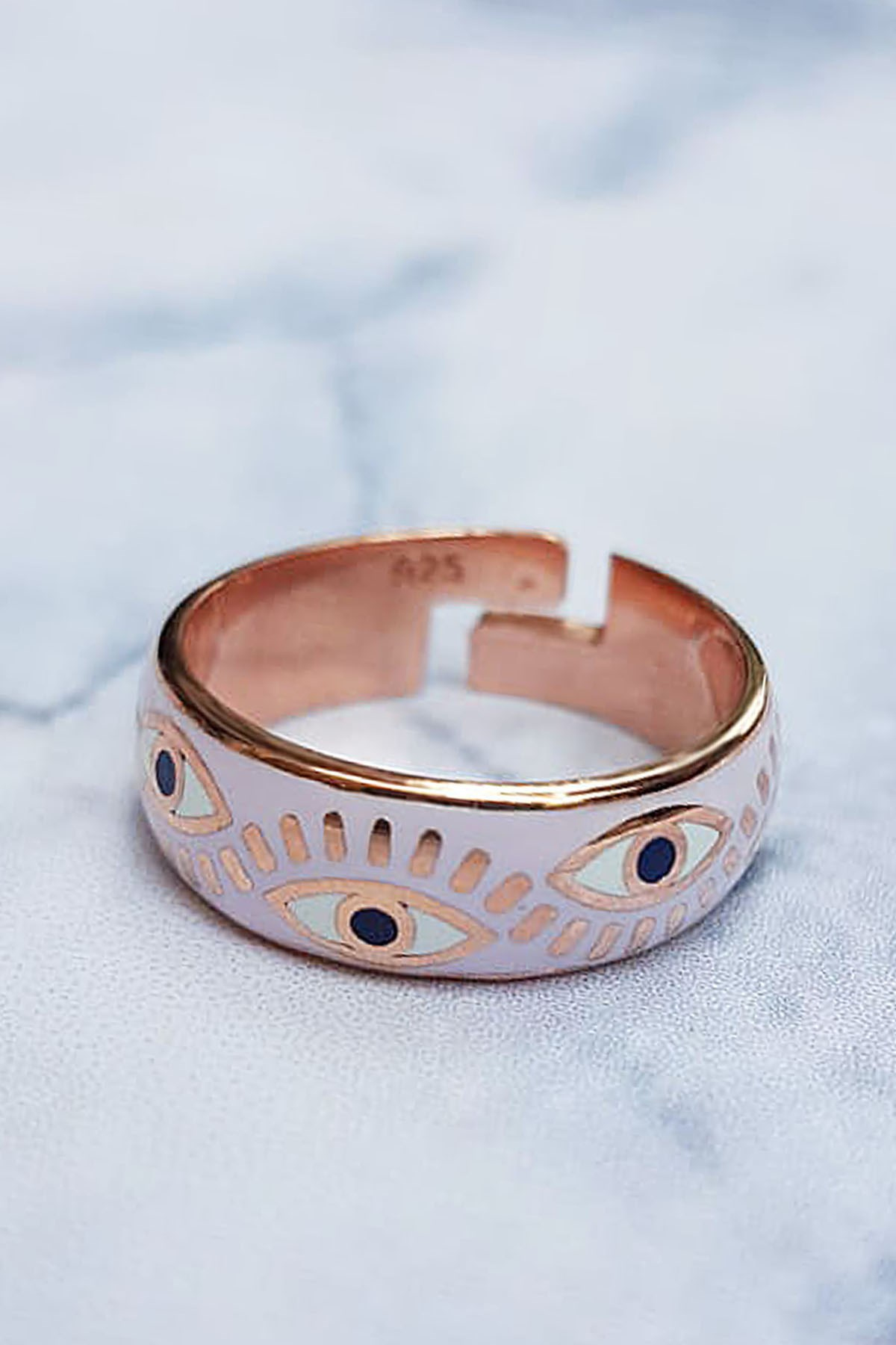 EYE FLAT FIGURED LILAC ENAMELED SILVER RING