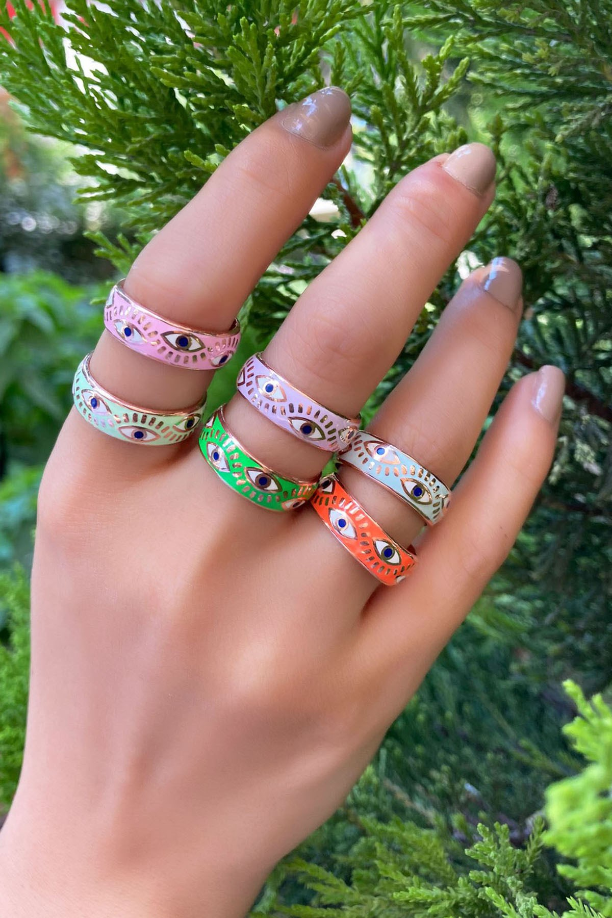 EYE FLAT RING WITH POWDER ENAMELED SILVER RING