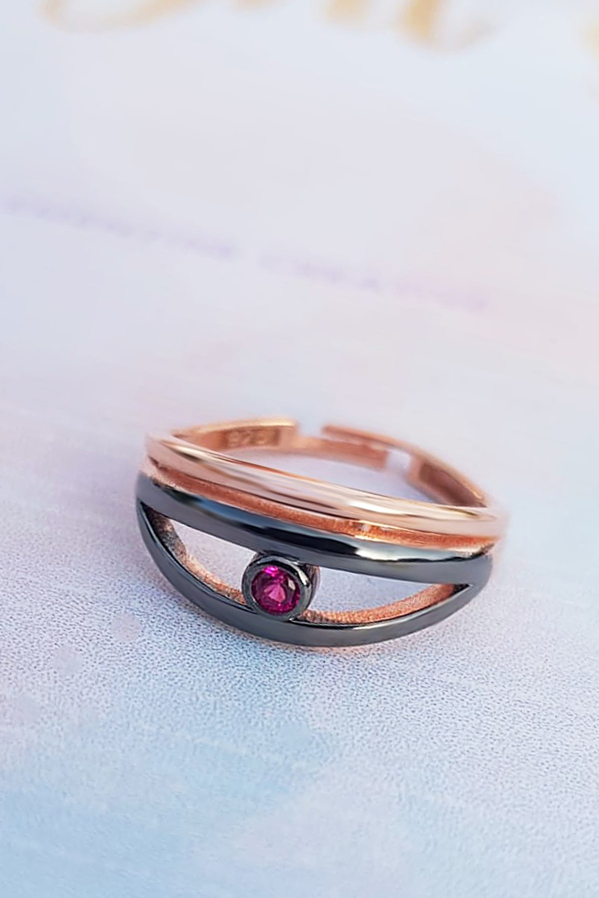 SINGLE STONE FUCHSIA SILVER RING WITH EYES