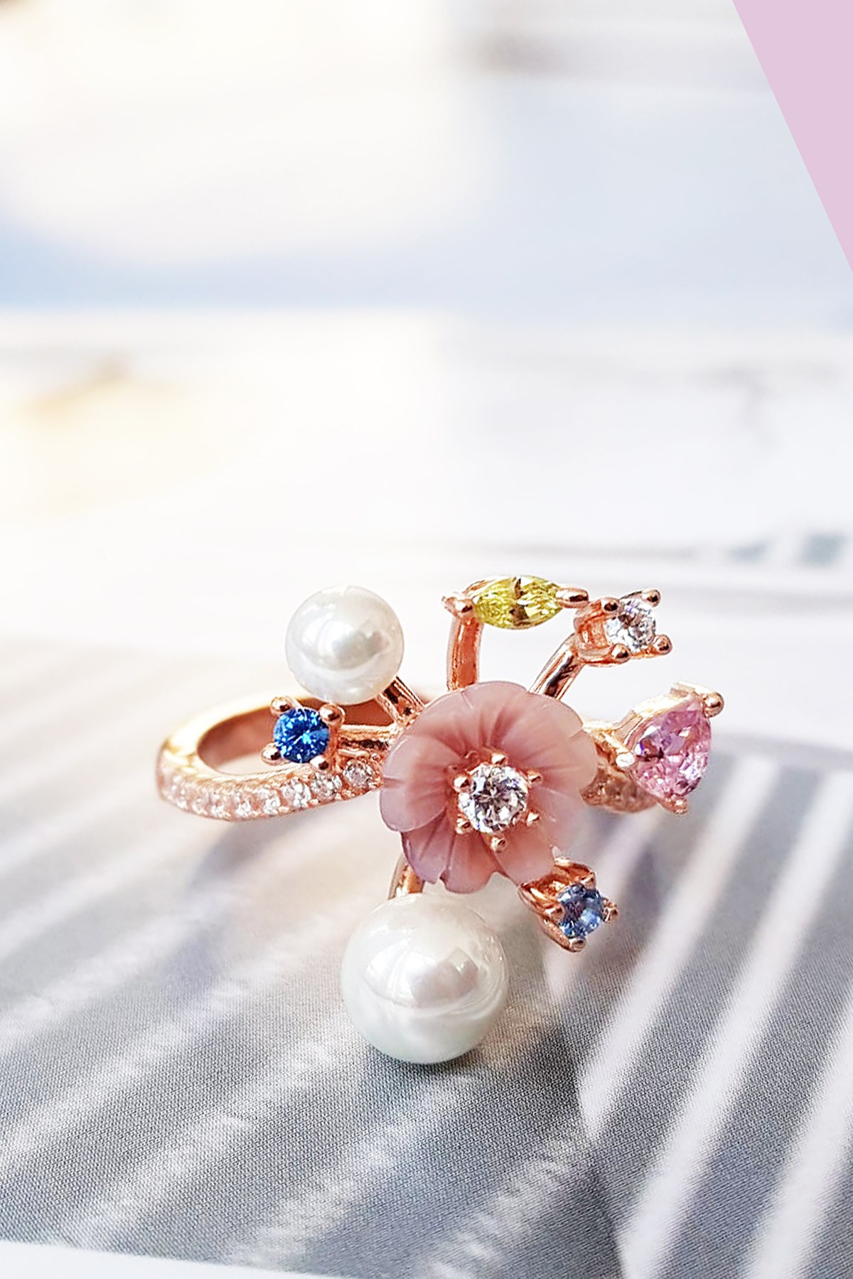 ITALIAN PEARL PINK FLOWER SILVER RING