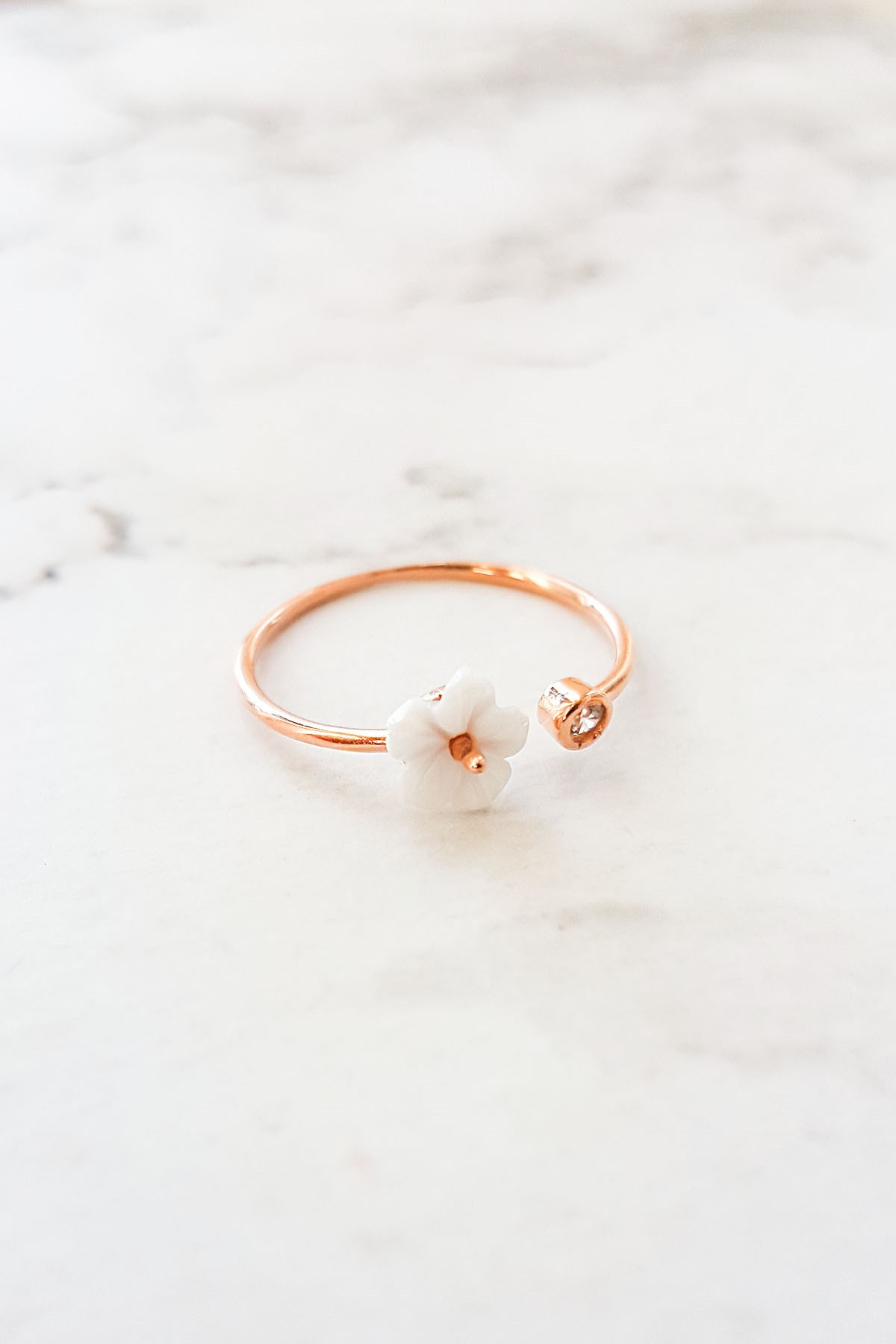 İthal Sedef Çiçekli Dal Gümüş Yüzük