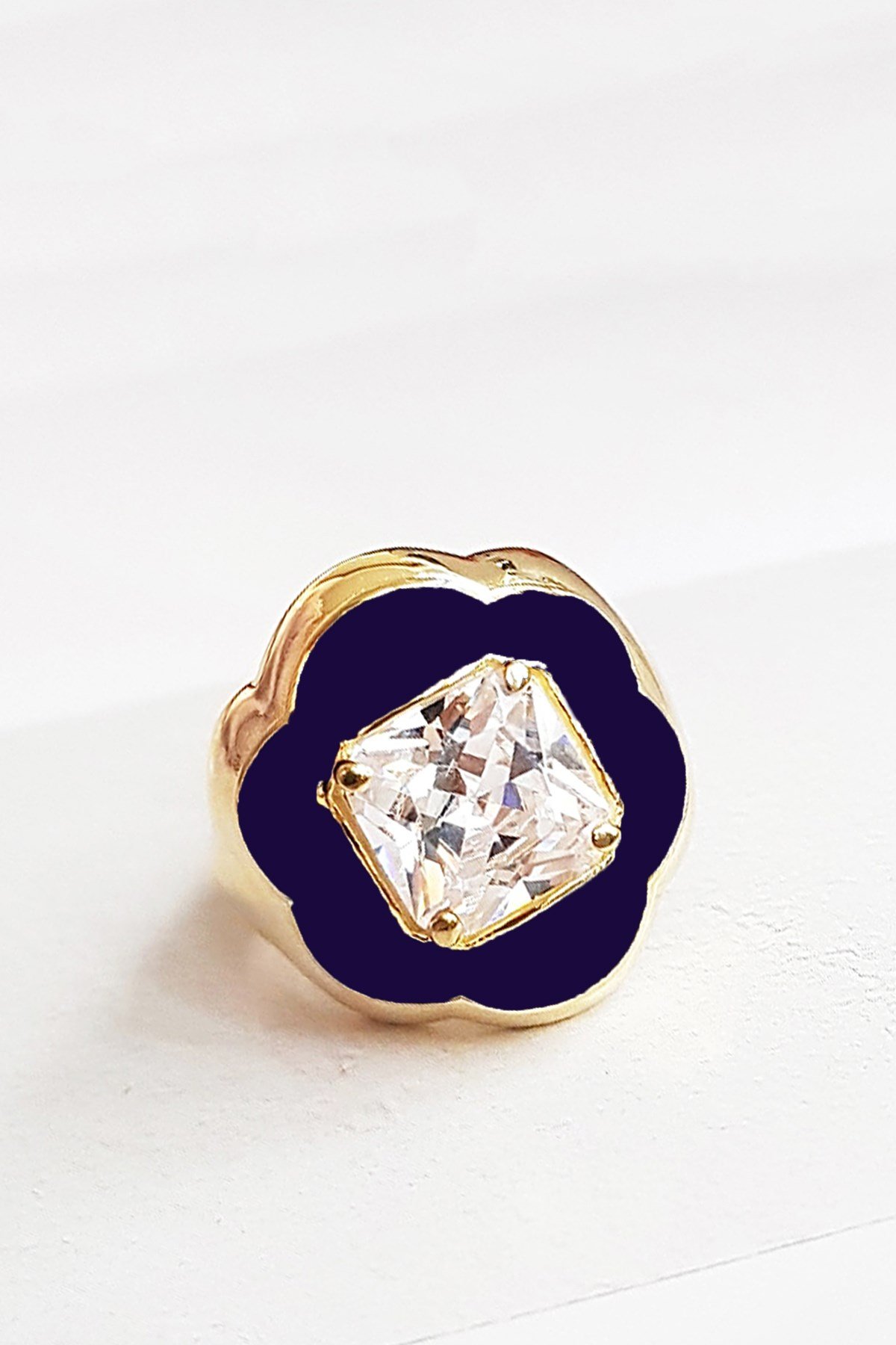 NAVY BLUE CRYSTAL FLOWER SILVER RING