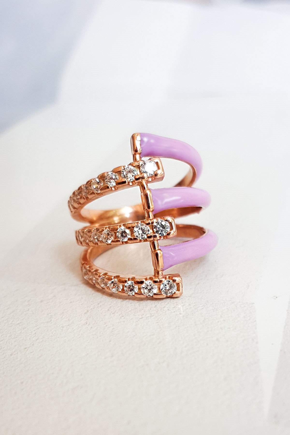 Lila Mineli Triple Taşlı Gümüş Yüzük