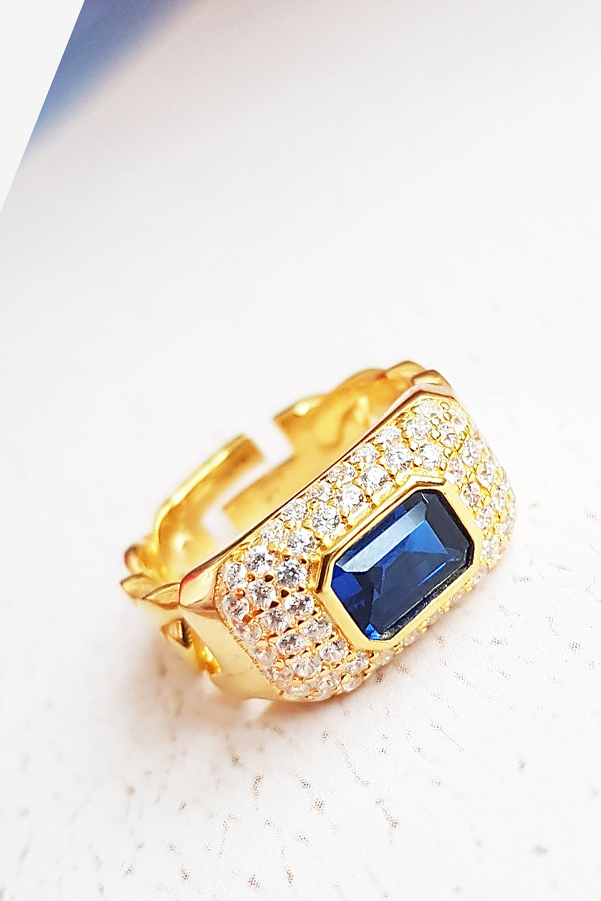 MAVİ DOLU TAŞLARLA ZİNCİR TASARIM GÜMÜŞ YÜZÜK