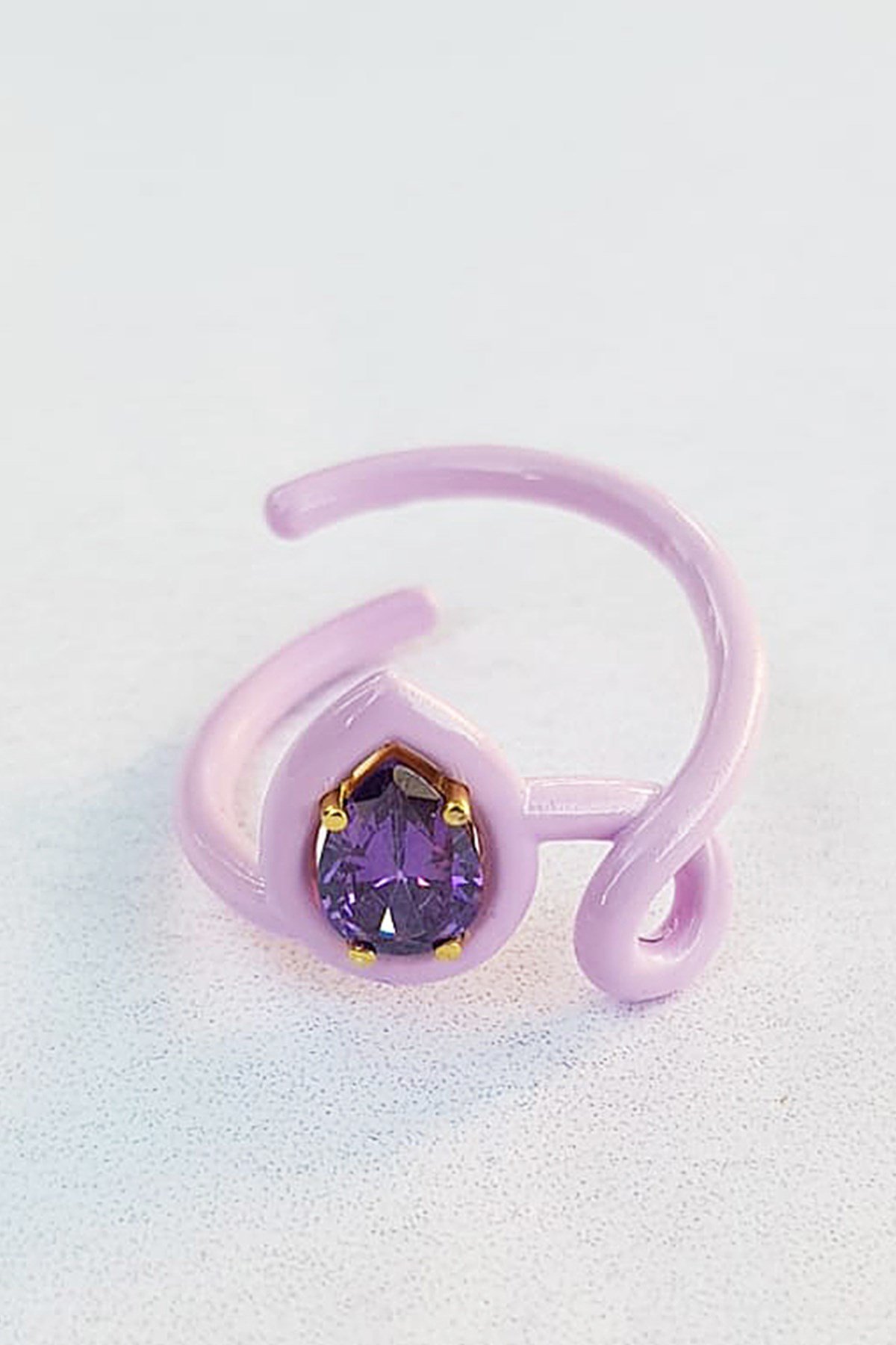 MİOLA LILA ENAMELED SILVER RING WITH PURPLE STONE