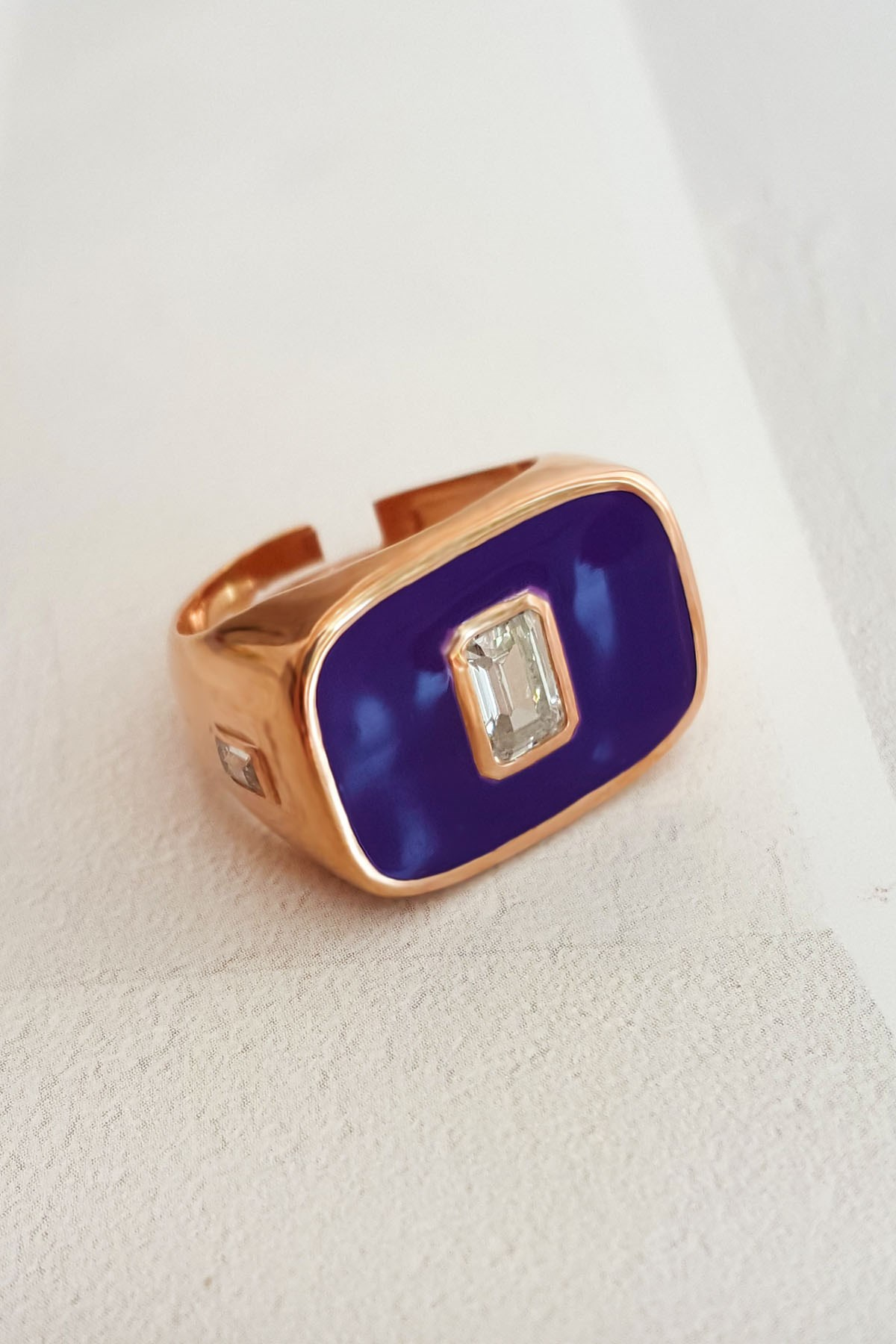 Mor Mineli Ortasi Baget Taşlı Gümüş Yüzük