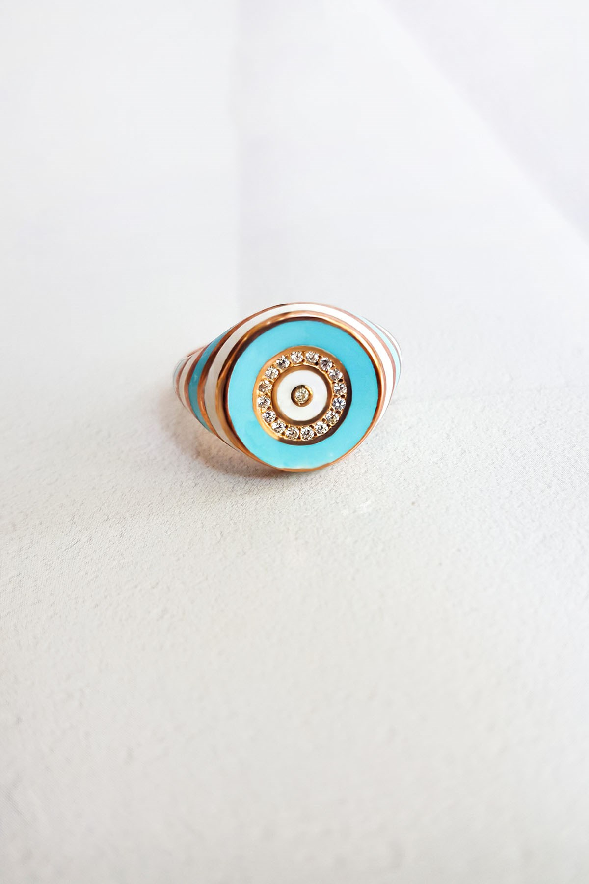 Pastel Mavi Mineli Yuvarlak Gümüş Yüzük