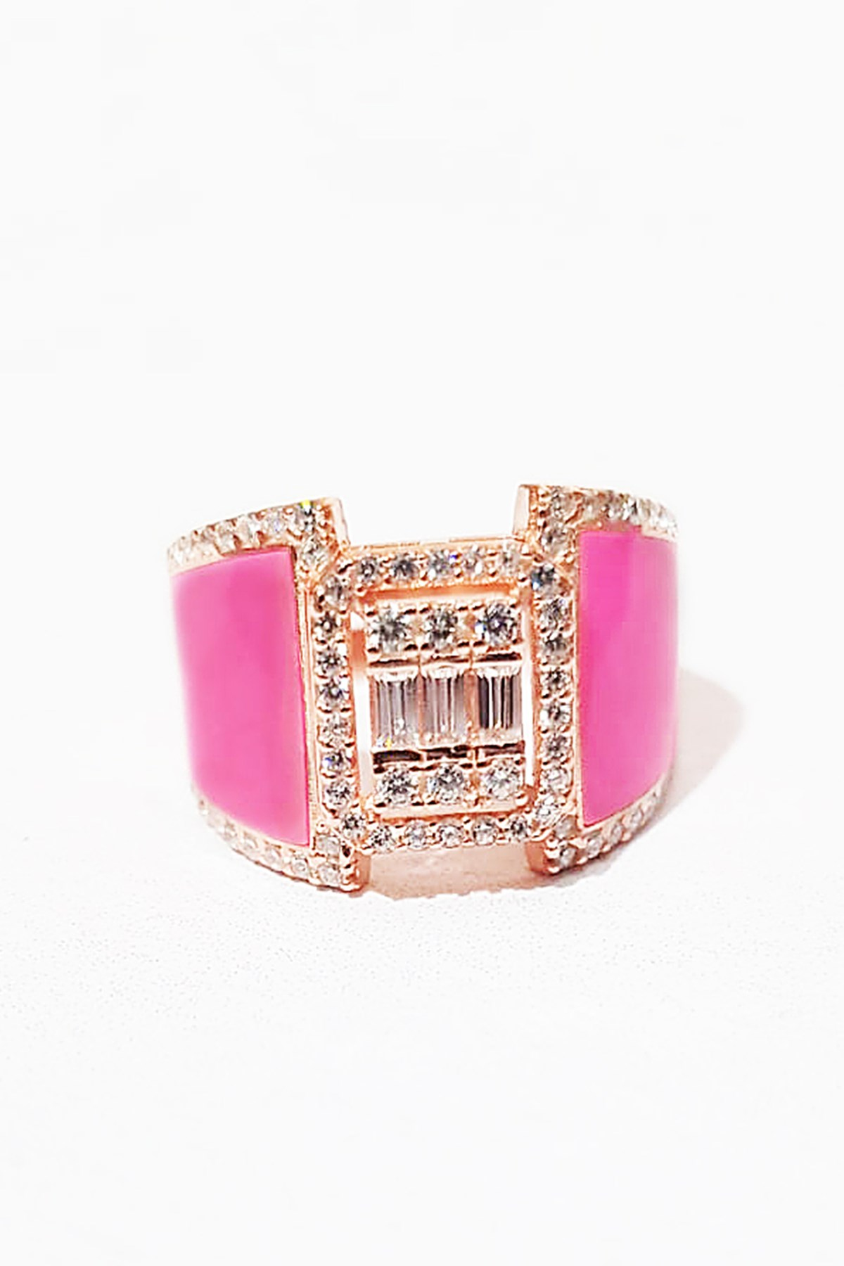 Pembe Mineli Baget Taşlı Gümüş Yüzük