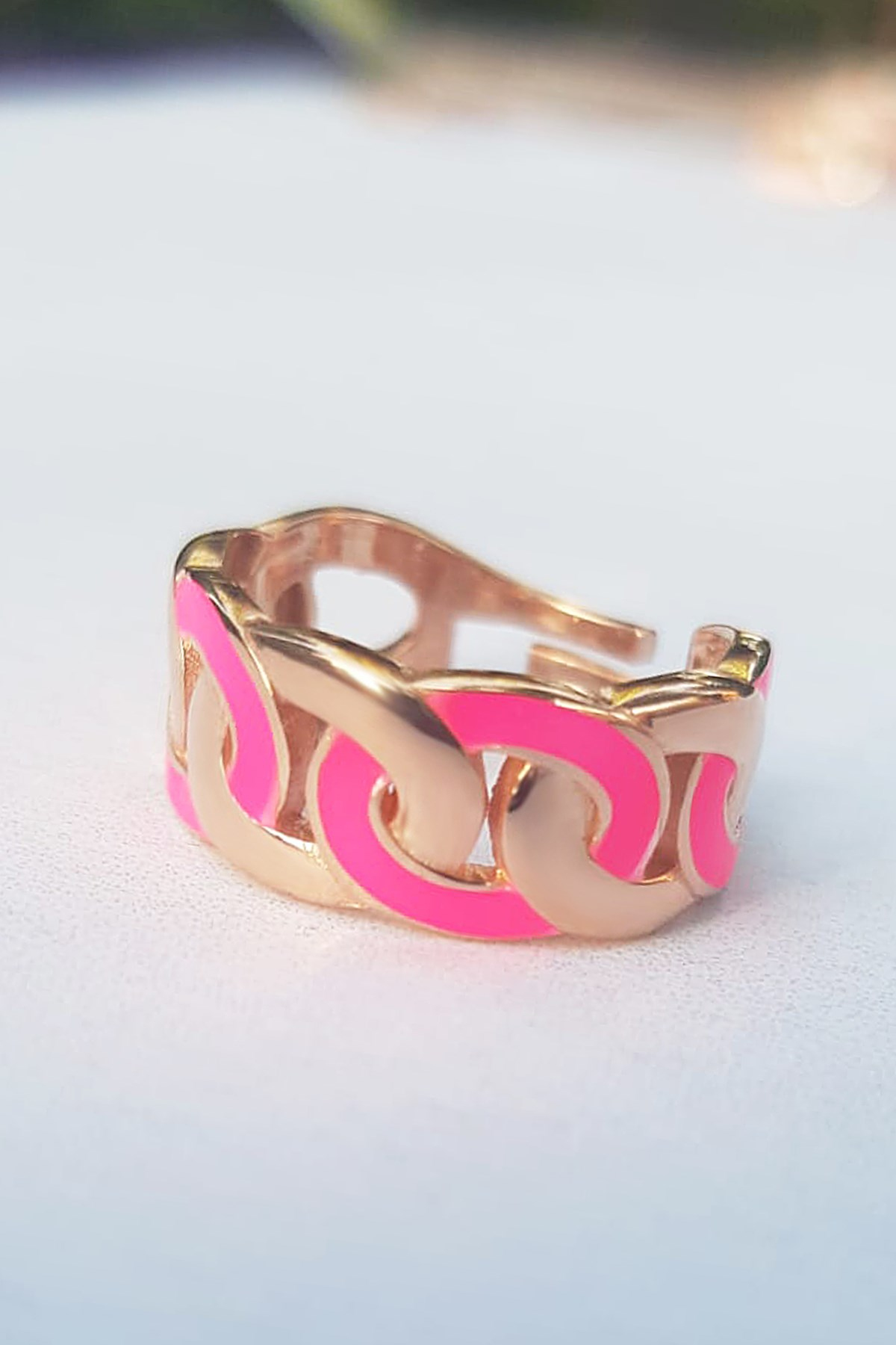 PINK COLOR TRANSITIONAL MESH MODEL SILVER RING