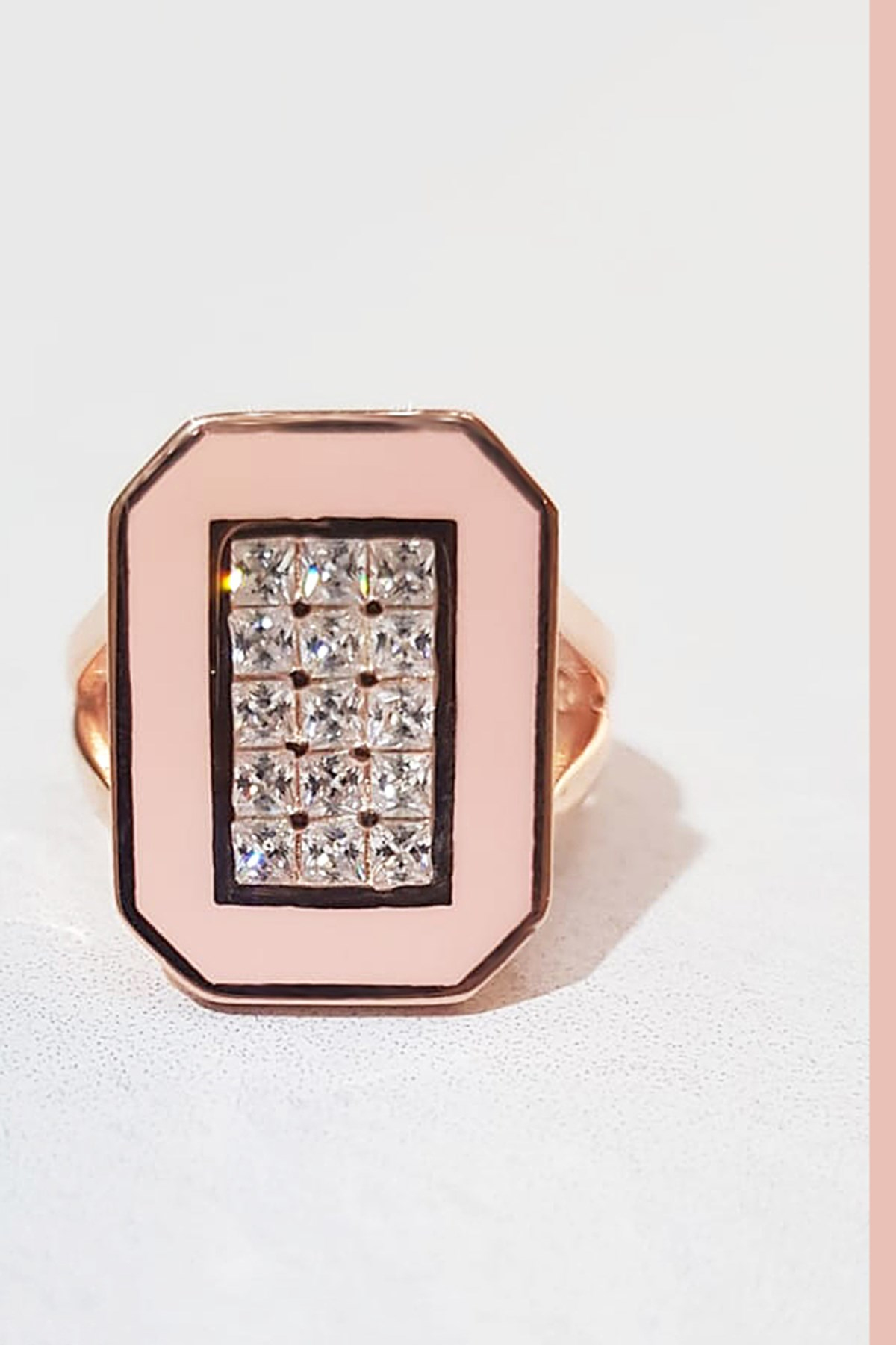PUDRA MİNELİ DİKDÖRTGEN İÇİ TAŞLI GÜMÜŞ YÜZÜK