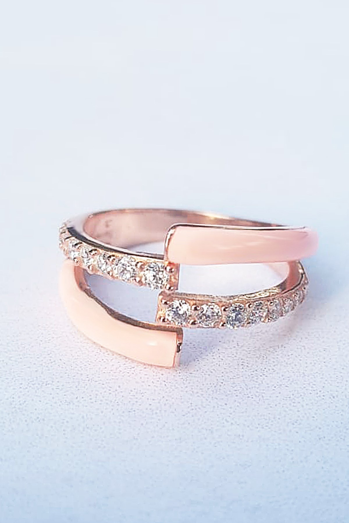 TOZ PEMBE MİNELİ TWİN TAŞLI GÜMÜŞ YÜZÜK
