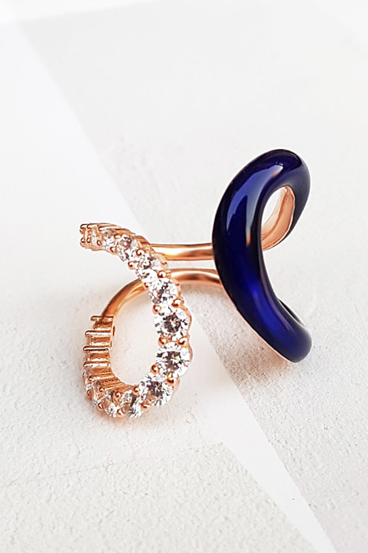 WAVY NAVYBLUE ENAMEL GÜMÜŞ YÜZÜK